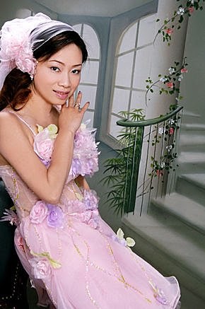 第一個造型{浪漫白紗}~這套衣服可是選了好久,才勉強接受的~因為實在...太素雅了!不適合我的風格...哈哈!