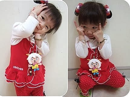 愛拍照的張小妹~今天的主角是"喜羊羊香包"不是你啦~哪裡學來的Posture 一直擺不停哩!