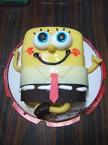 一般網路上看到的,幾乎都是用奶油畫成海綿寶寶的圖案,這個是整體造型...正是我想要的款式!