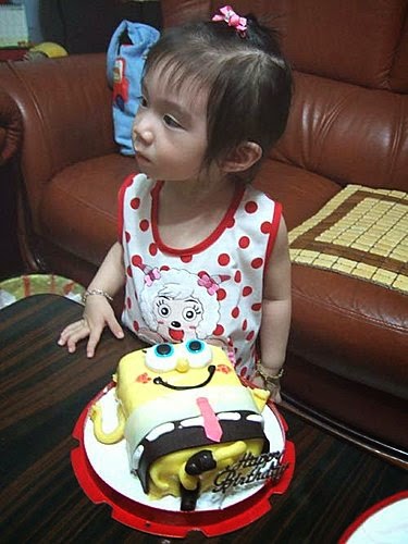 繼去年的~ 人像蛋糕-慶週歲後...今年張小妹迷上了海綿寶寶~