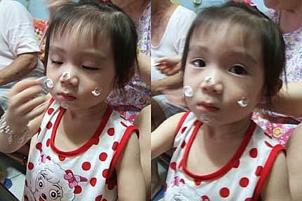 祝妳生日快樂!祝妳生日快樂!祝妳生日快樂喔............大家開心唱生日歌的時候,張小妹眼神只盯著海綿寶寶不放~