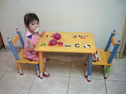 我的小餐桌,有這個小桌子..媽咪就可以陪我玩家家酒,吃飯飯...長大後,還可以用來寫功課.看看書喔!