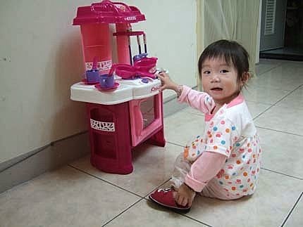 我的家家酒,我最喜歡每天在這裡煮菜菜了,我還知道要放紅蘿蔔.青菜到鍋子裡煮喔,有沒有比媽咪還厲害啊!