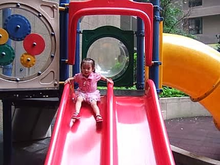 游完泳後...一走出來~眼尖的張小妹,看到迷死人的溜滑梯....興奮得大叫!攔也攔不住...狂奔而去~就在這裡玩了半個多小時!