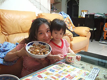 煮飯的時候..張小妹鬧脾氣!硬是要我抱抱...結果呢?油不小心噴到她手...看她手搓個不停呢~知道媽咪的辛苦了吼!