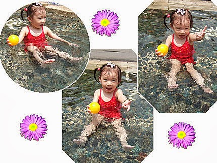 媽咪說:我在水中漫步很厲害,平衡感很好...居然都沒有跌倒喝到水喔!