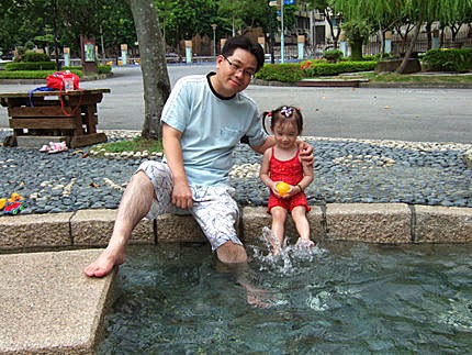 今天爸比也陪我下水嚕,因為爸比說:天氣好熱~要泡泡腳比較涼快,我順便幫爸比"沖涼"有沒有很孝順呀!