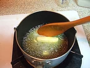 1.取一深鍋,將無鹽奶油放入鍋中以火煮至融化。