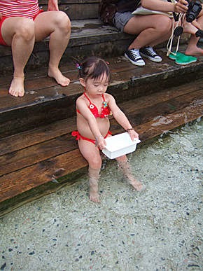 今天的人好多喔~天氣很好...沒有出大太陽,整個摸蠣的漁場~變成大家的游泳池啦!