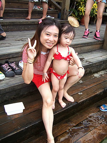 我本來玩得很開心~但是...發現一直有別的叔叔阿姨在偷拍我,害我很害羞...一直拉著媽咪的手不放啦!