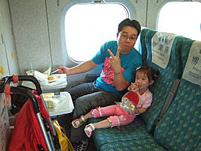 我們買了早餐準備在車上吃,張小妹可以免費搭乘!所以..我們決定買自由座位,一個人可以省個幾十塊錢,一排三椅....張小妹也有位置坐呢!