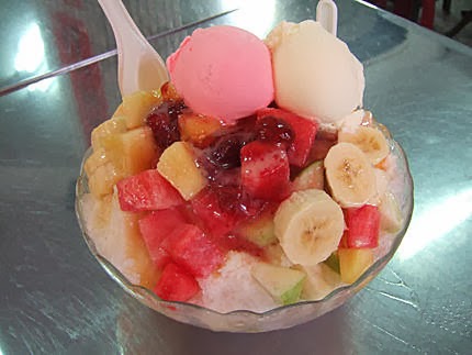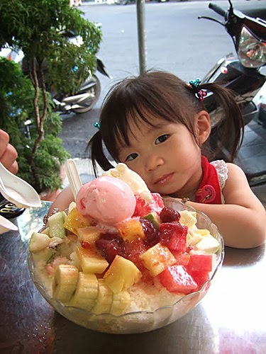 只好打消念頭...既然大老遠來這一趟,一定不能錯過{海之冰}嚕....我們點的是冰淇淋綜合水果加煉乳*2倍 $120元