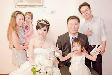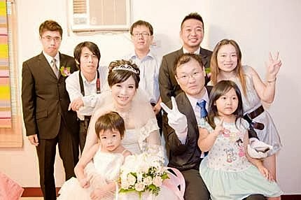 終於把新娘子娶進門嚕~趕緊趁著空檔,搶先拍一下合照...後面還有一大推人,排隊等著呢!