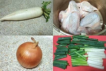 材料:雞翅12支,白蘿蔔1/2條(約500g),薑3-4片,青蔥2-3支,
