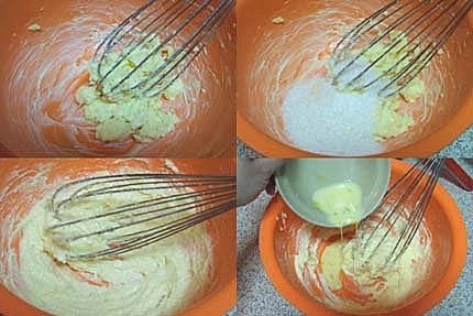 3.雞蛋及牛奶分兩次加入確實攪拌均勻