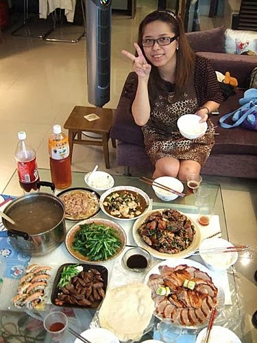 辛苦的女主人...擁有一副好廚藝,短短一小時~菜餚推滿桌,雖然有些是買現成的..但是還是現做的好吃喔!