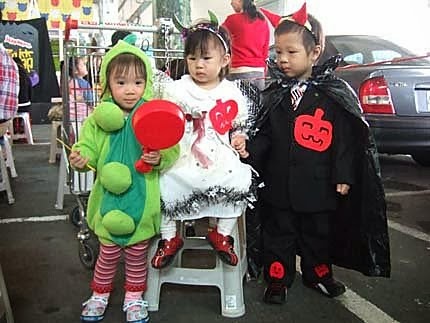 聽到萬聖節...我頭就痛了,要幫小孩裝扮耶~最近老大出國去出差,工作忙得沒有閒暇去想造型!