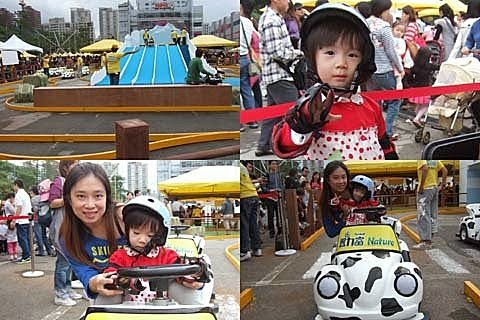 激動的遊戲來了,別看張小妹小小一隻,開起車來...殺氣十足,只踩油門...不踩煞車的呢!