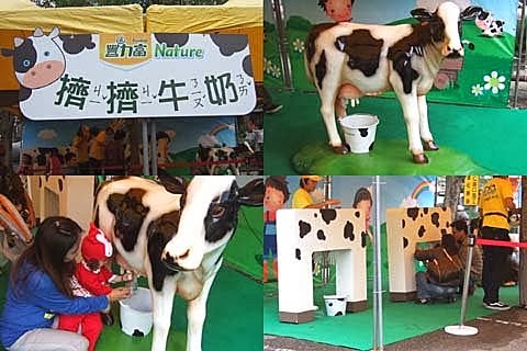 最基本的擠牛奶體驗,雖然是假牛...還是很有趣味性!