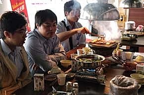 這間不只有燒烤,還有小火鍋可以搭配喔..就連湯頭也有很多選擇,我們選了麻辣~藥膳~咖哩~泡菜鍋!