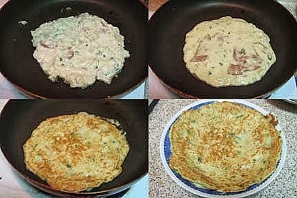 也可以將所有的麵糊倒入平底鍋中煎成一整個大的
