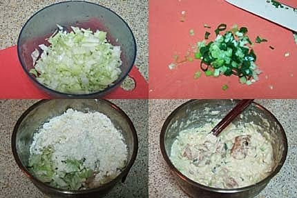 高麗菜洗淨瀝乾水份切細絲,青蔥切蔥花