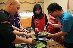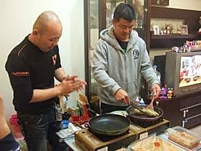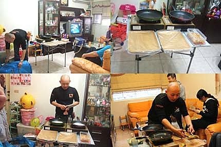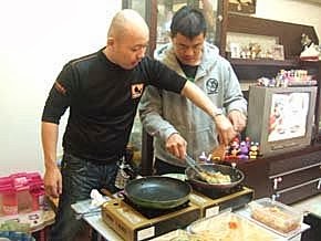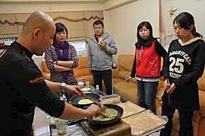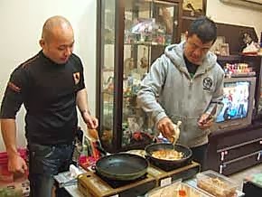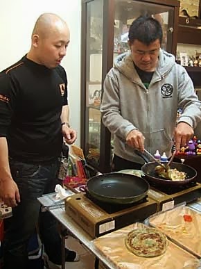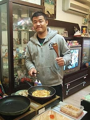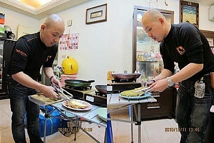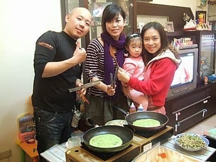 抓餅教學時刻,老李第一個跳出來掌廚....初體驗:大阪燒抓餅~