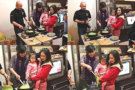 張小妹也要跟芷林阿姨來學習一下,幫忙掌廚煎抓餅給大家吃喔!