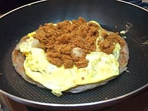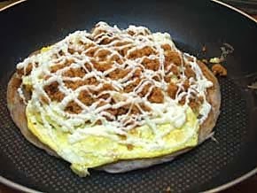 這是老闆特地為老爺製作的"超豪華生日抓餅"內餡有:起司絲 花枝丸 肉鬆 蛋 美乃滋 玉米粒