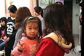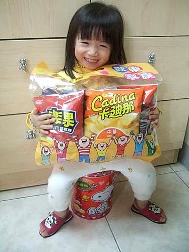 張小妹最開心了~有的吃...又有禮物收,謝謝阿姨們送的餅乾...糖果呦!