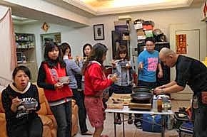 原本以為10幾個人擠在小小的空間,會很擁擠....不過~還好呢!天氣冷...顯得人情更溫暖,下次挑戰20人來做客吧!