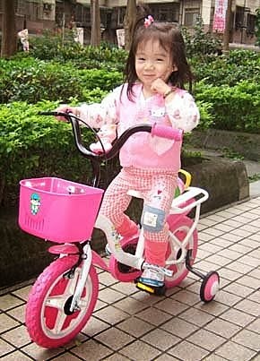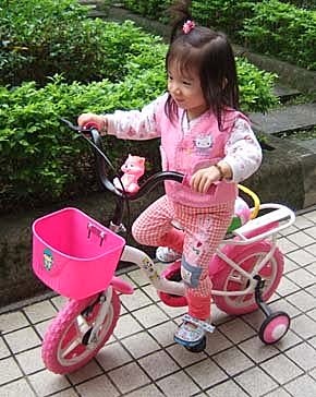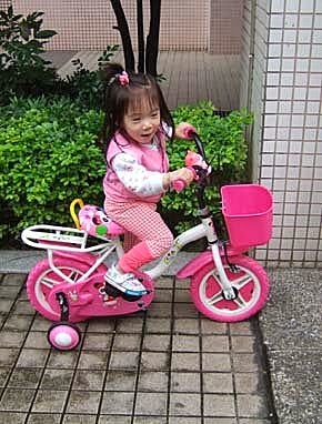 讓我看傻了眼...趕緊用手機錄下她這驚人的學習能力,播放給老爺看後....二話不說~決定提早買一台腳踏車給她玩。