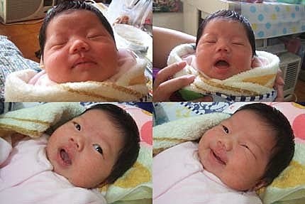 妹妹伸懶腰的模樣.....好口愛喔!終於等到妹妹醒了,還會做表情...來個四連拍呢!