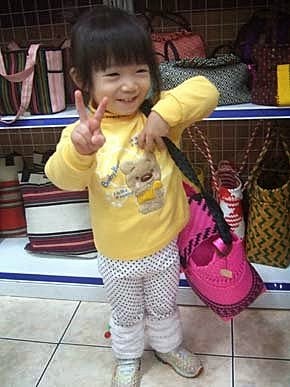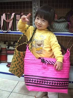 這裡有販售原住民的紀念物,張小妹像個阿婆似的....東一個包 西一個包,小人背大包!