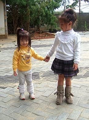吃飽喝足了..準備帶著小朋友去採果樂,經過果園時...有個小寵物區,裡面養了小松鼠..小朋友都逗留在這不肯離開呢,漂亮的小姐姐牽著張小妹~頗有姐姐風範呢!