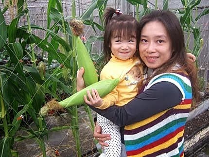 看到大大的玉米好興奮,爸比就動手摘了下來.....這就是我們今天的"戰利品"但是...張小妹,為何你會出現"狡猾"的眼神呢?