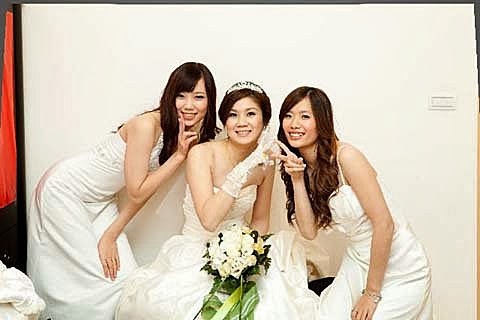 還有你的伴娘身材好,又漂亮......三個美女合照,很美的畫面~