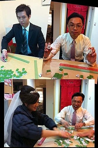 又話說~迎娶儀式結束後,等待宴客的時間...新娘大發威了,居然穿著一身的禮服,在麻將桌上游泳~就連新郎.伴娘 伴郎都加入,太好笑了吧!