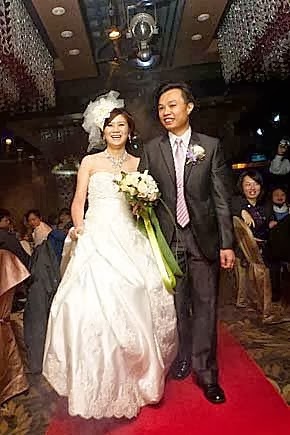 新郎新娘進場嚕,看新娘笑的比......外號"闕大嘴"老公的嘴...還大!就知道你有多開心了~