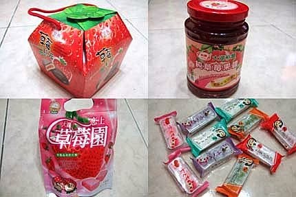 今天真是大豐收,媽咪採了一大箱300元的草莓,還買了草莓麻糬巧克力夾心、草莓果醬、草莓軟糖、草莓麻糬呢!