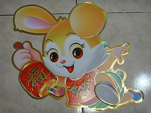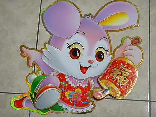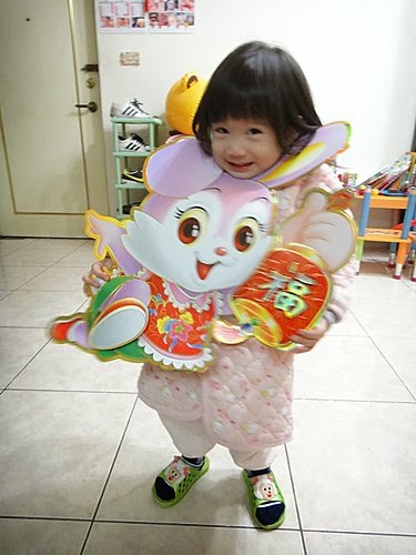 我們一家三口去逛了大賣場,買了一對超口愛的玉兔春聯,給它大大的貼在門口,自己換春聯....也是挺有成就感的!