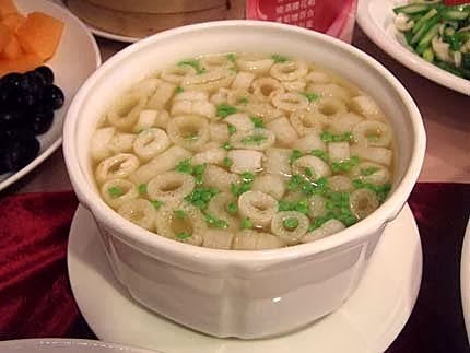雪花扣三絲:絕對是愛美女性不可缺少的重要元素!魚唇肉絲,加入白菜絲、香菇絲、荀絲及淋上蛋白打發的雪花醬汁,不管是視覺味覺都能一次滿足。
