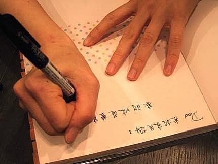 而且.....簽書活動開始的時候,大家都發一張小紙條,上面要寫上自己的名字或是暱稱,老師還沒看到我的紙條,就叫出我的暱稱了呢~好感動喔....
