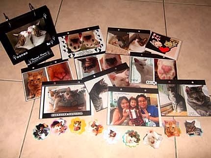 做一點小小的編輯,再買個喵喵圖案的桌上型相本。也作了九個喵喵寶貝的磁鐵(因為老師養了九隻貓)