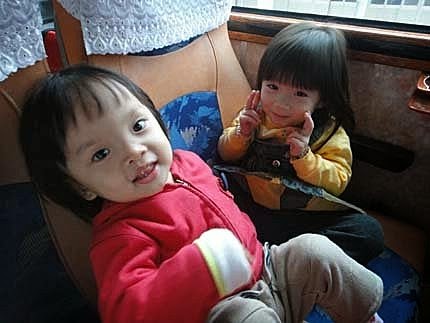 今天張小妹有可愛的角角妹妹作伴,一路上分享著餅乾、羊乳片~小姐妹倆的感情越來越好呢!