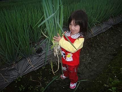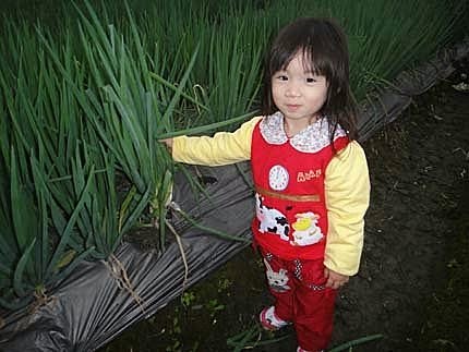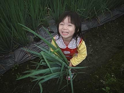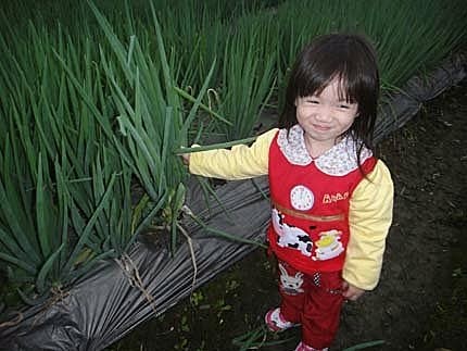 採蔥的人~真的很辛苦!張小妹是一級棒的"小幫手"