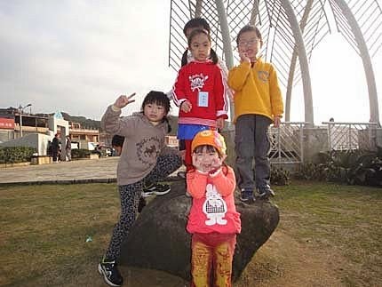 今天天氣好好,小朋友各個都開心的不得了,拍張合照...動個不停