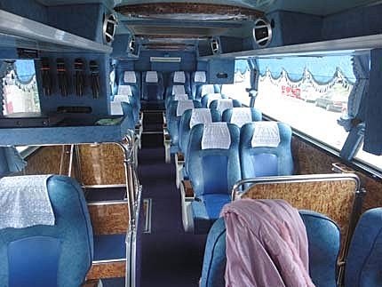 說是有免費的專車接送,這....未免也太豪華了吧!是三排椅的高級遊覽車耶~瞧..張小妹興奮得很!