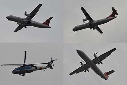 今天整天...已數不清有多少架的飛機飛過,居然還有"直升機"勒!太不可思議了吧....