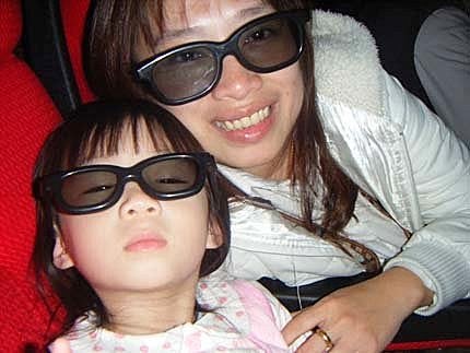 影城貼心的服務,有提供小朋友專用的眼鏡,看我們倆.....像不像大哥的"女人"